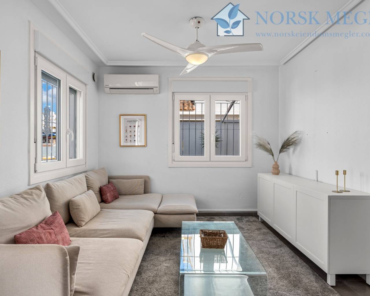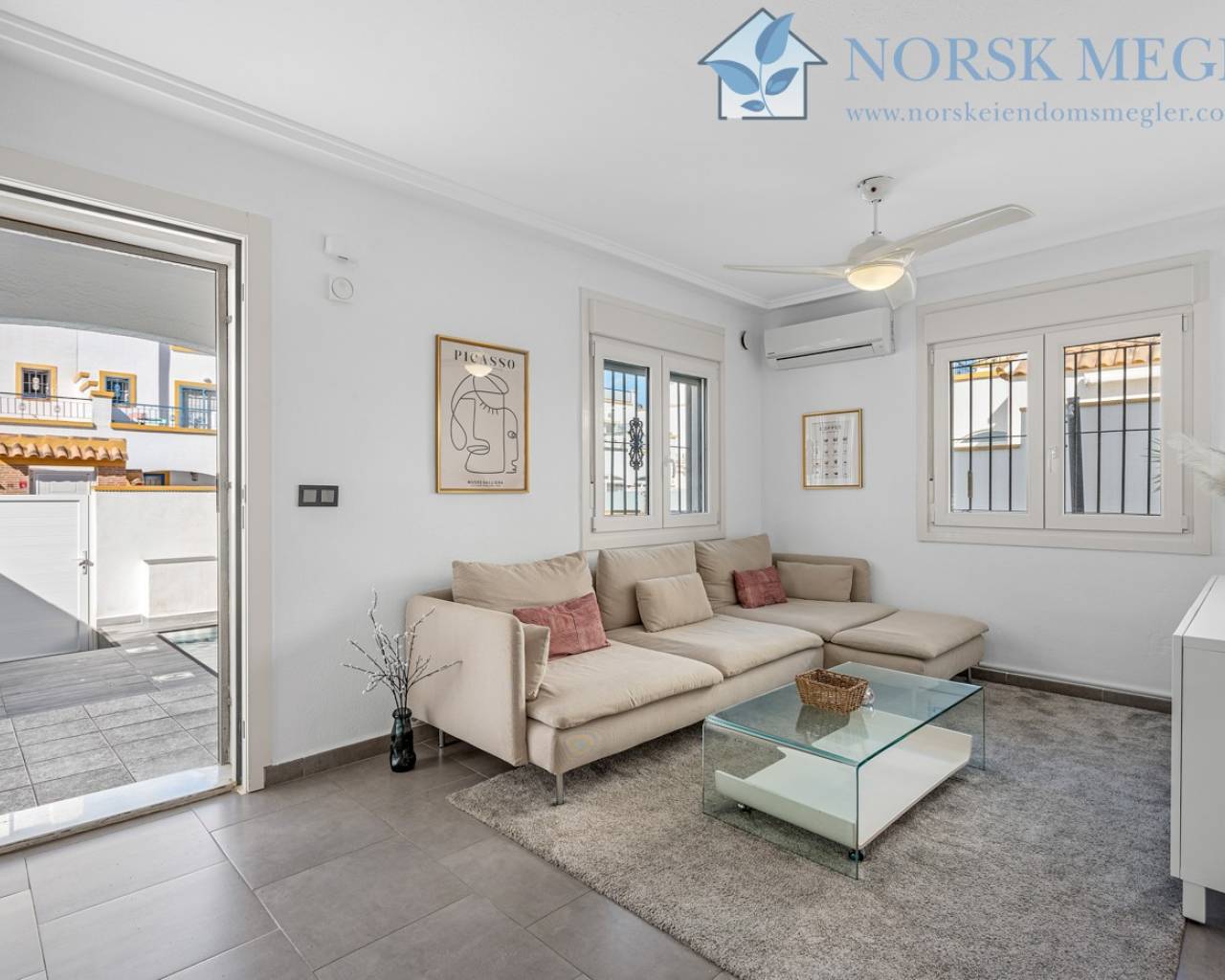 Este cuidado chalet tipo quad ofrece 3 dormitorios, 2 baños y una piscina privada de agua salada. Está situado en una excelente zona de Torrevieja, a poca distancia a pie de un centro comercial, bolera, cine y centro médico, lo que lo convierte en una vivienda ideal tanto para residencia habitual como para vacaciones.