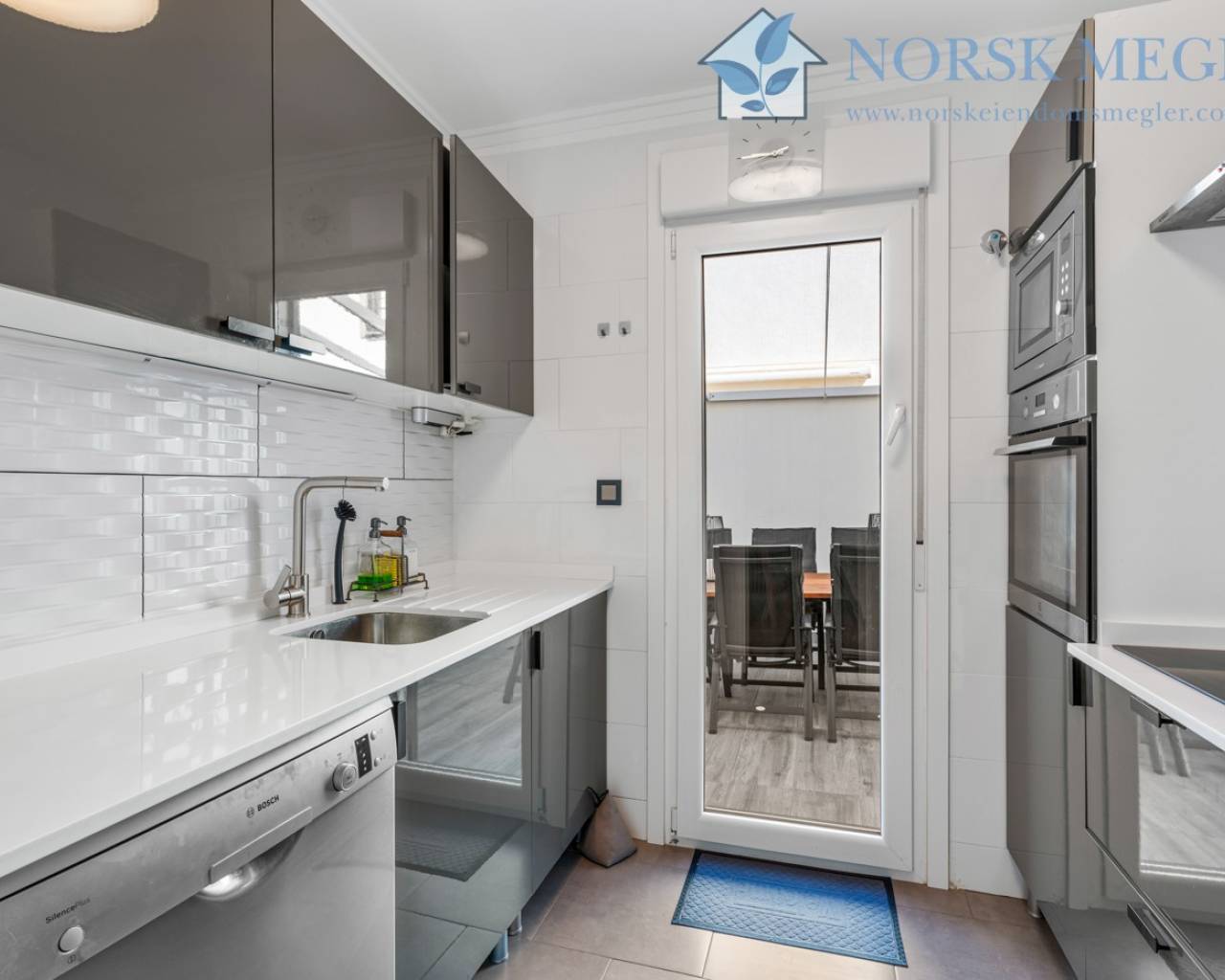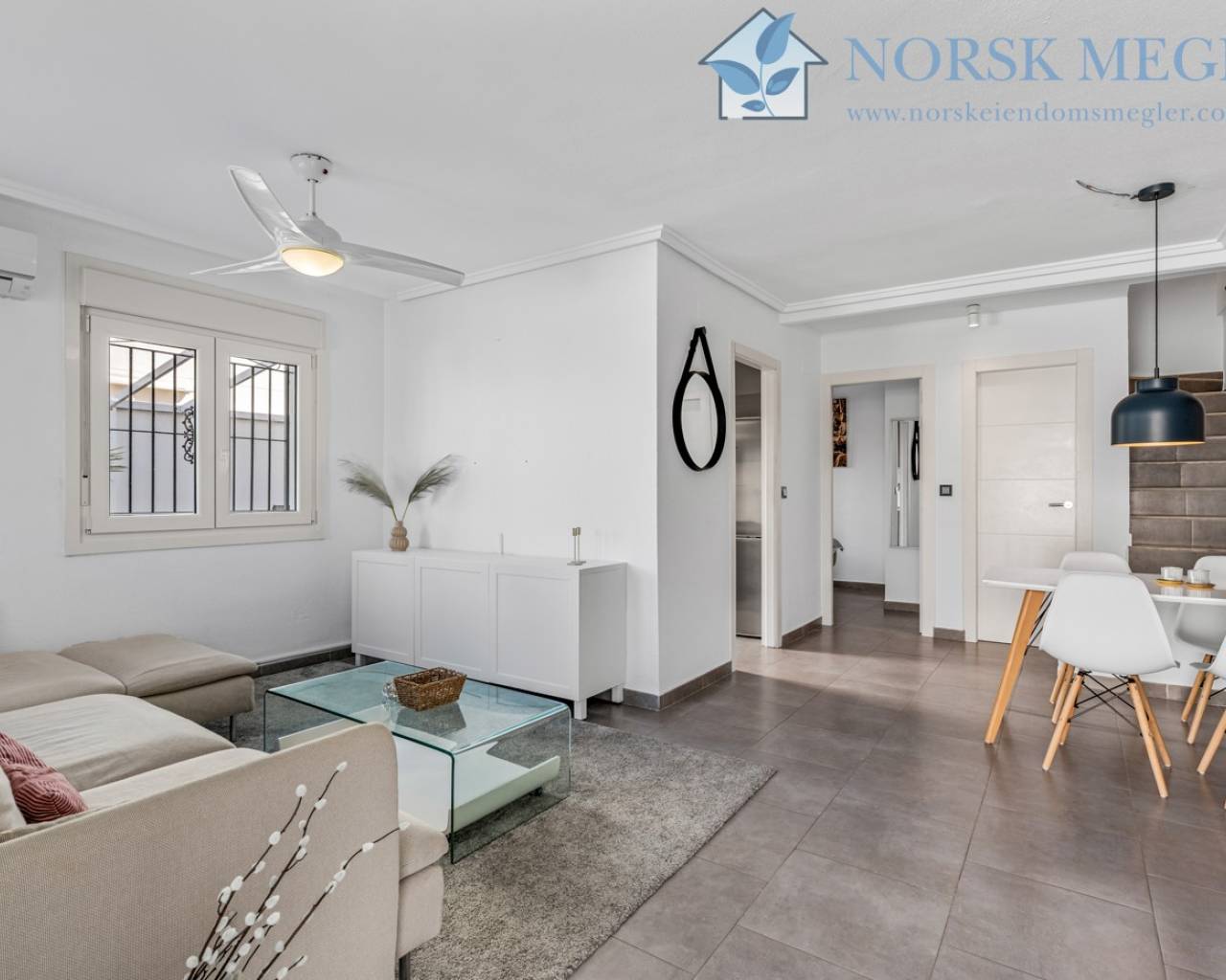 Denne velholdte firemannsboligen har 3 soverom, 2 bad og privat saltvannsbasseng og fellesbasseng, og ligger attraktivt til i Torrevieja med gangavstand til kjøpesenter, bowlinghall, kino og helsesenter. Boligen passer perfekt som helårsbolig, feriebolig eller investering.